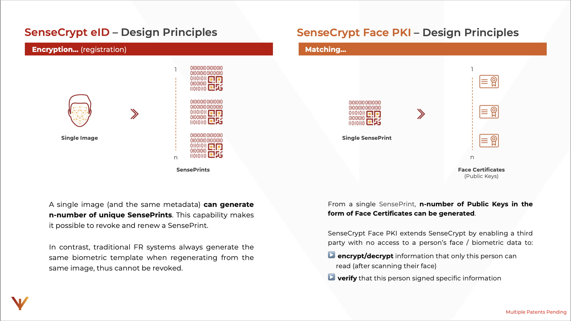 Design Principles - How SenseCrypt is a privacy-preserving, non-biometric technology which offers biometric verifiability for individuals.