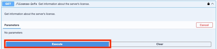 To get information about your license, expand the /license-info section and then click the Execute button as shown below: